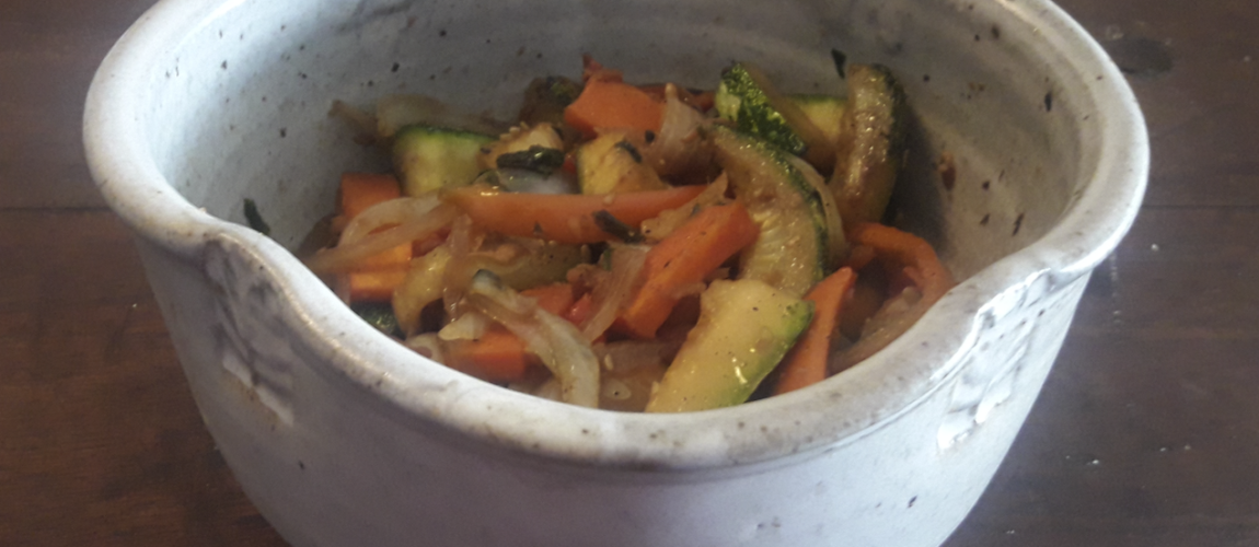 Acompañante perfecto para un pescado y quinoa o arroz. Para dos personas Ingredientes: -1 calabacin en palitos cortos -1 Zanahoria en palitos delgados y cortos -1Cebolla en juliana gorda -Una Cucharadita de pasta de ajo casera * -Una cucharadita de…