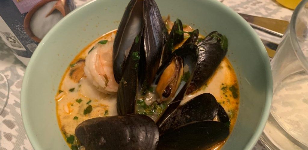 Curry de mariscos con leche de coco. Arroz blanco es perfecto para acompañarlo.   Ingredientes 1 Cebolla mediana picado finamente – preferiblemente morada 3 dientes de ajo picado finamente 2 cucharadas de jengibre picado finamente 2 cucharadas de Pasta de…